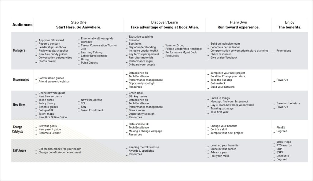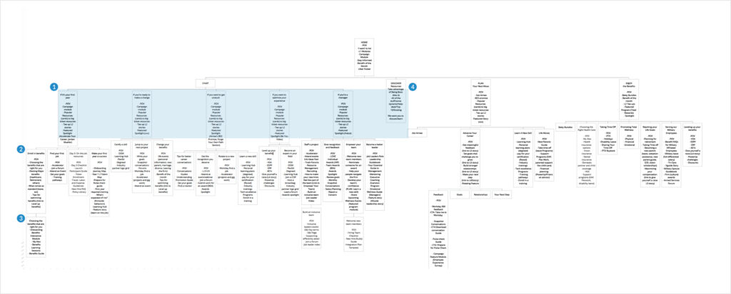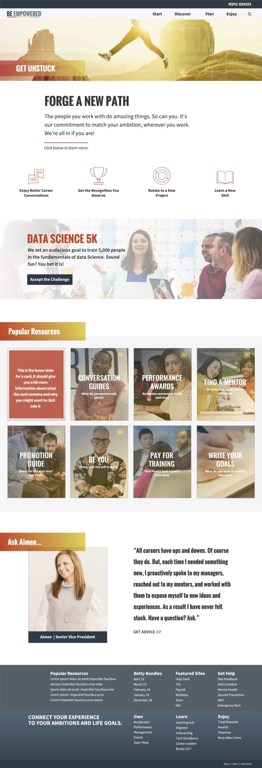 I led the team that tackled the challenge of overhauling the client’s Employee Value Proposition and internal employee portal. In aligning with the client’s empowerment strategy, we undertook a comprehensive restructuring of the information architecture to ensure a user-centric approach. By developing a hierarchical system that resonated with employees' language and needs, we created a clear pathway for different personas to access relevant resources based on their roles and goals. Through thoughtful research, careful development of wireframes, and strategic design choices, we facilitated easy navigation, quick access to resources, and a visually cohesive experience. The utilization of modern technologies like CSS3 Animations, SVG graphics, and Bootstrap in our front-end development further enhanced the portal's functionality, ensuring a seamless and modular user interface within the Sharepoint environment.