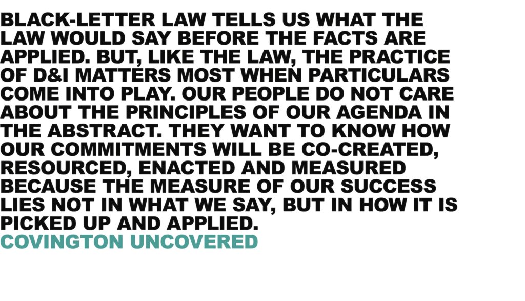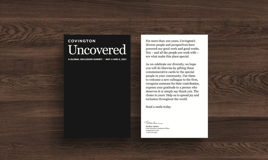 Because the measure of success lies not in what you say, but in how it is picked up and applied. For more than 100 years, Covington has helped their clients navigate the intersection of law and policy while providing the greatest number of pro bono hours of any major law firm in the world. I was honored to partner with them to deliver a digital event experience that united all their minority and LGBT+ communities worldwide, to celebrate their diversity, promote inclusivity, spark meaningful conversation, and deliver on their enduring promise to confront ongoing racism and injustice in our societies.