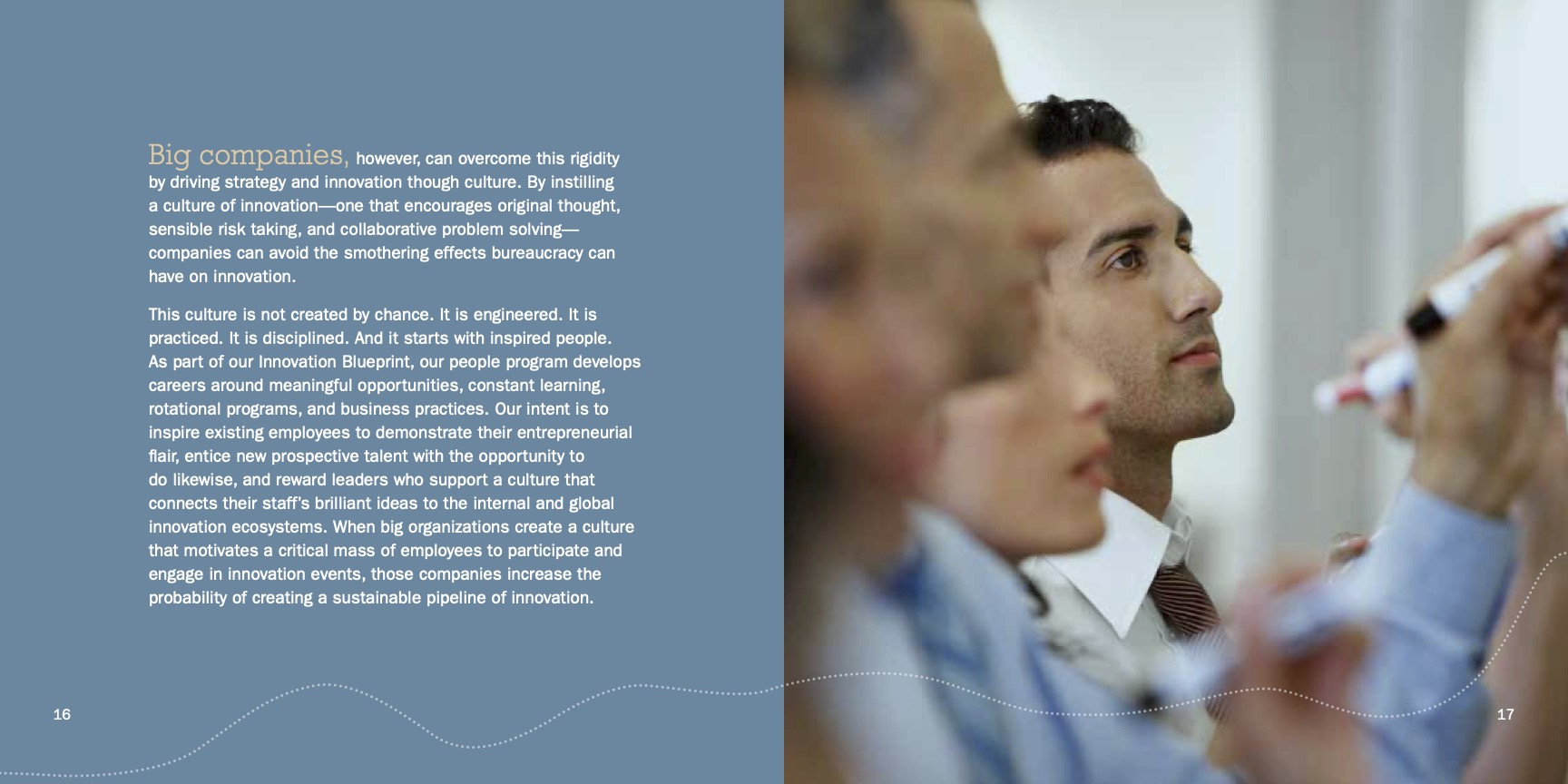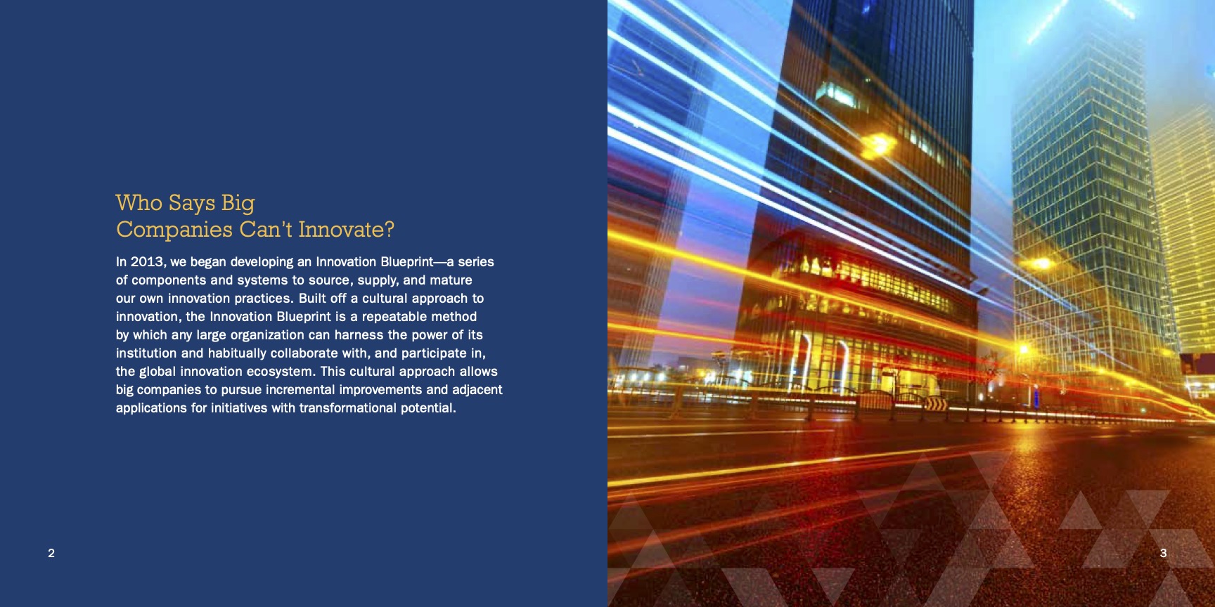 When making a major investment in their innovation portfolio worth hundreds of millions, a Fortune 500 company installed a cultural system that could source, supply, and mature the innovation practices of big organizations—agnostic of industry. I led the project to ghostwrite this article which positioned their Innovation Blueprint and created a multi-year platform for their Chief Innovation Officer.